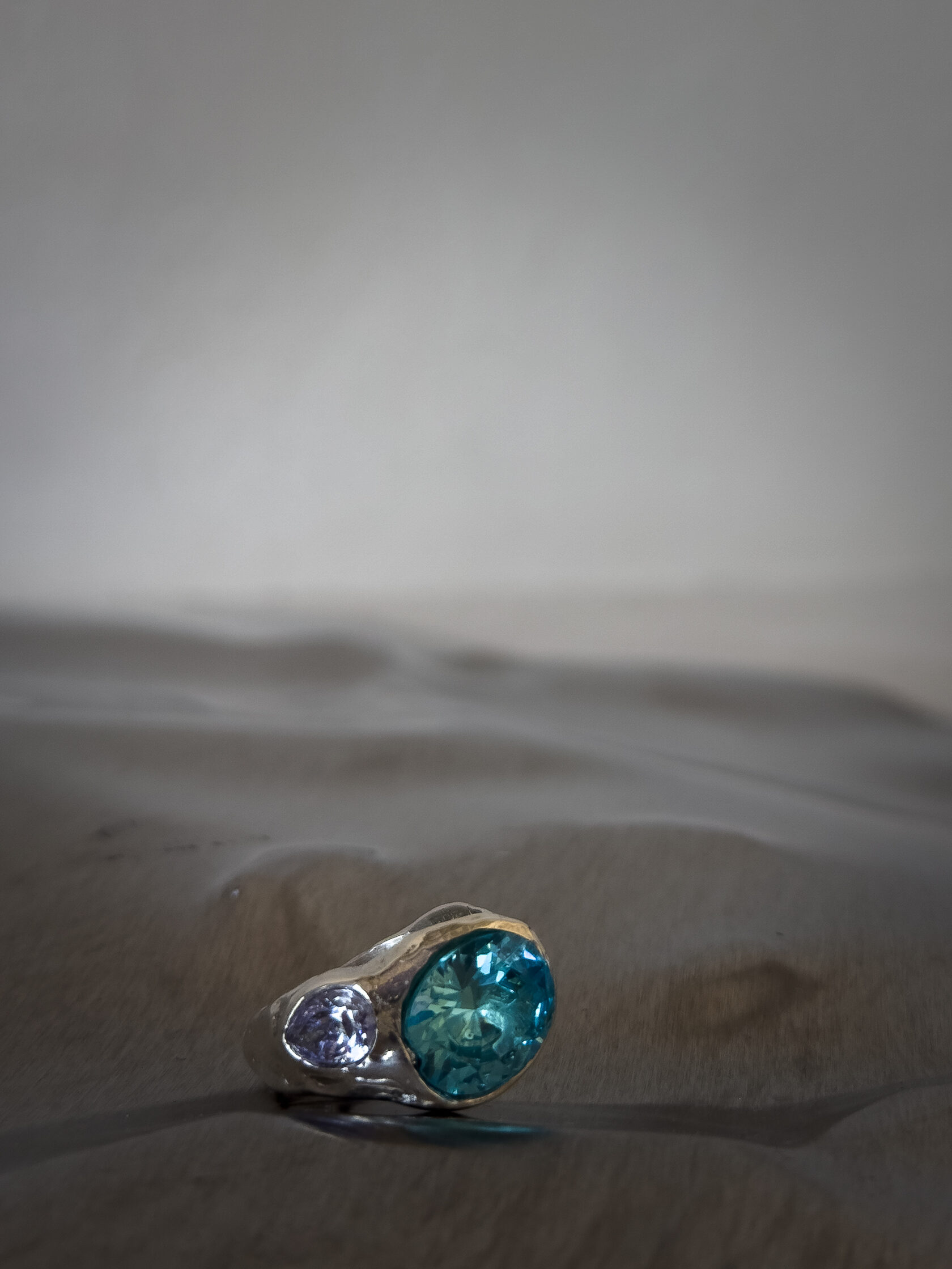 Гладкое серебро, небесно-голубой топаз и мерцающий аметист — сочетание, в котором есть и прохлада, и глубина. Топаз традиционно ассоциируется с ясностью мыслей и внутренним спокойствием, а аметист считается камнем интуиции и защиты от негатива. Вместе они создают идеальный баланс для тех, кто ценит стиль с подтекстом.